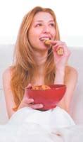 Лежа в постели (даже если вас тошнит и есть совершенно не хочется), съешьте какой-нибудь углеводистый несладкий продукт - сухарик, хлебец, кусочек черного хлеба. Полезно выпить настой из цветков ромашки: он благотворно влияет на процесс пищеварения. Некоторым помогает предотвратить тошноту употребление в пищу кислых продуктов - кусочка лимона, несладкого яблока, киви. Принимать пищу необходимо часто, но маленькими порциями. Обычно женщины сами знают, какие продукты переносятся ими хорошо, а какие неизбежно вызывают рвоту. Нужно прислушаться к себе. Часто даже мысли о нежелательном продукте вызывают появление тошноты. В основном хорошо переносятся растительные продукты, каши. Необходимо ограничить употребление тяжелых для переваривания продуктов - копченостей, жирного мяса, острого и соленого. Хотя некоторым женщинам, наоборот, хочется соленых продуктов. В небольших количествах их употреблять можно - если это приносит облегчение состояния. Следует помнить: чрезмерно горячая, равно как и излишне холодная пища раздражает желудок.