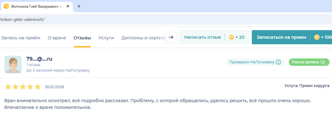 Хирург Житников просто супер профессионал!!!! Удалил бородавку на стопе быстро и профессионально! Спасибо!