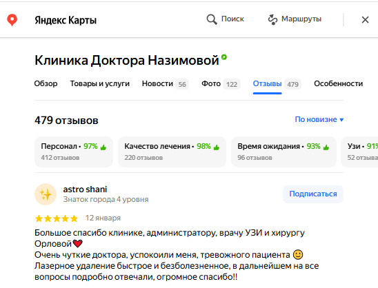 Большое спасибо клинике, администратору, врачу УЗИ и хирургу Орловой! Очень чуткие доктора, успокоили меня, тревожного пациента. Лазерное удаление быстрое и безболезненное, в дальнейшем на все вопросы подробно отвечали, огромное спасибо!!