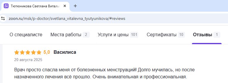 Всегда ответственно подходит к любой мелочи, так что с ней можно быть спокойной за свое женской здоровье. Хожу только к ней.