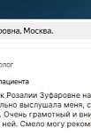 Пришла на обследование, чтобы провериться. Ничего не беспокоило, нужно было просто узнать, все ли хорошо. Осталась очень довольна приёмом - все объяснили, особенно медицинскую терминологию, в которой я мало разбираюсь. Врач очень приветливая, с большим вниманием отнеслась ко мне! План дальнейших обследований мне подробно рассказали. Благодарю!